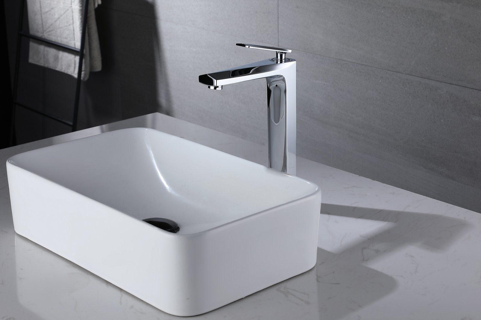 Modern and minimalist, it complements a variety of bathroom and kitchen decor styles.