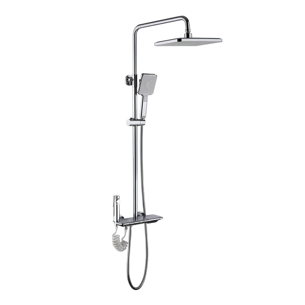 • Material: Brass body/zinc handle/plastic hand shower and plastic top shower