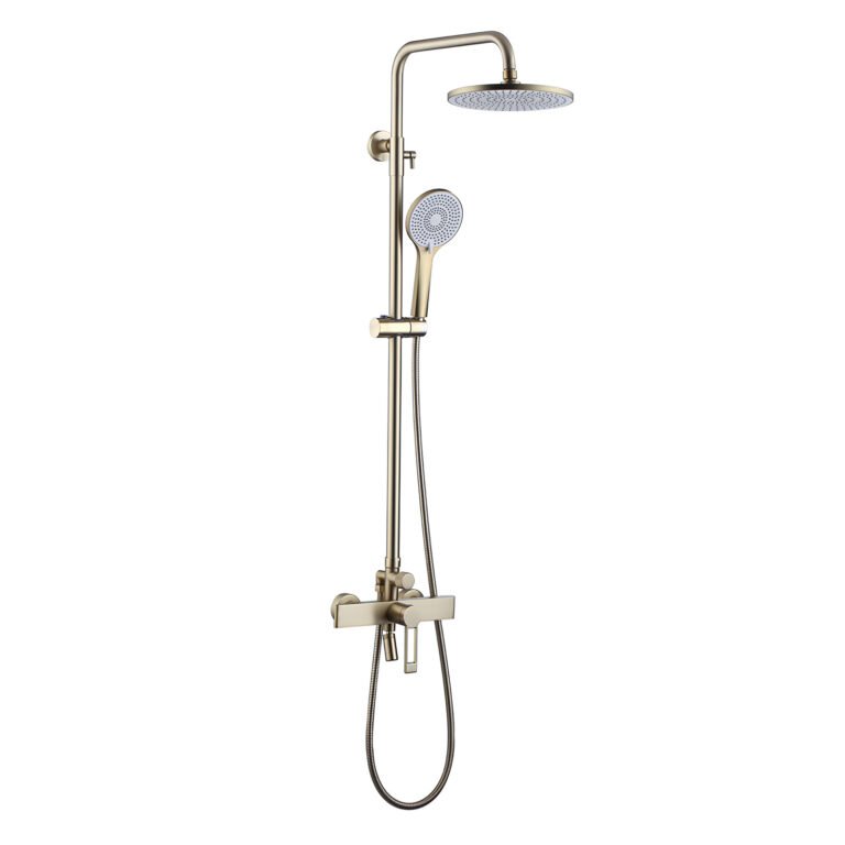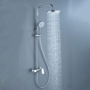 - Material: Brass body/zinc handle/plastic hand shower and plastic top shower